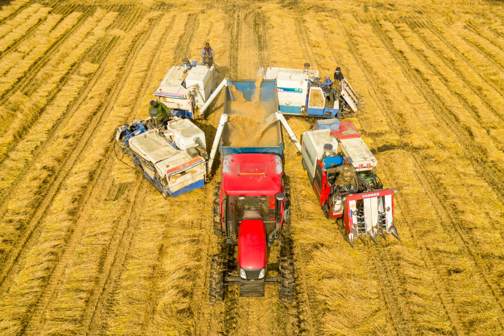 在黑龙江省绥化市北林区双河镇,村民驾驶收割机进行卸粮作业(2024年10月13日摄,无人机照片)。新华社记者 张涛 摄 2024年全国粮食总产量首次迈上1.4万亿斤新台阶,乡村全面振兴与新型城镇化有机结合进一步强化,努力缩小城乡差距、地区差距、收入差距,推动全体人民共同富裕不断取得更为明显的实质性进展。 “老百姓的事情是最重要的事情”。2024年春节前夕,习近平总书记来到天津市西青区第六埠村。 2023年海河发生流域性特大洪水时,第六埠村也遭了灾。在村民杜洪刚家,习近平总书记同一家人亲切交谈,一笔一笔算灾情损失和灾后生产发展、就业增收账。 听说杜洪刚一家在党和政府帮助下很快渡过了难关,总书记很是感慨:“国泰民安,民安才能国泰,党中央和各级党委、政府时刻记挂着大家的安危冷暖,也希望乡亲们依靠自己的双手重建美好家园,创造幸福生活。” 战洪水、抗干旱,守住兜牢民生底线,坚持在发展中保障和改善民生……风雨中,党和人民想在一起、干在一起,拼搏在一起、奋斗在一起。 “必须始终坚持以人民为中心,一切为了人民,一切依靠人民,努力让全体人民在共同奋斗中共享改革发展成果。”庆祝中华人民共和国成立75周年招待会上,习近平总书记再次郑重宣示。