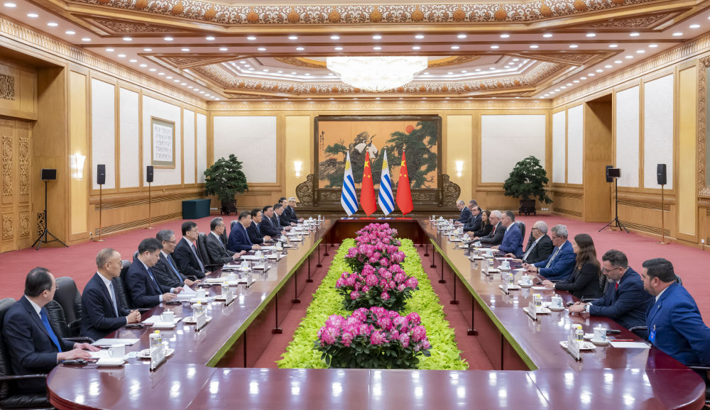 2月3日上午,国家主席习近平在北京人民大会堂同来华进行国事访问的乌拉圭总统奥尔西举行会谈。新华社记者 翟健岚 摄 奥尔西表示,中国在习近平主席领导下取得伟大成就,令人钦佩,期待“十五五”规划为世界带来更大机遇。今天正值乌中建交38周年,两国全面战略伙伴关系处于历史最好时期。中国是乌拉圭的重要合作伙伴,为乌经济社会发展提供无私帮助。发展对华关系已成为乌拉圭国策,得到各党派和社会各界一致支持。乌方坚定支持一个中国原则,支持“一国两制”方针。乌方期待同中方深化全面战略伙伴关系,将双边合作提升到更高水平。双方要加强发展战略对接,在贸易、投资、科技、减贫、绿色经济、数字经济等领域深化合作,促进教育、体育、旅游等领域人文交流,为两国关系注入更强劲动力,为两国人民带来更多福祉。乌方高度赞赏习近平主席提出的人类命运共同体理念,面对充满挑战的国际地区形势,愿同中方携手合作,尊重联合国宪章宗旨和原则,坚持多边主义,维护国际贸易体制,推动拉中关系不断发展,维护全球南方共同利益。 会谈后,两国元首共同见证签署投资促进、贸易等领域10余份合作文件。