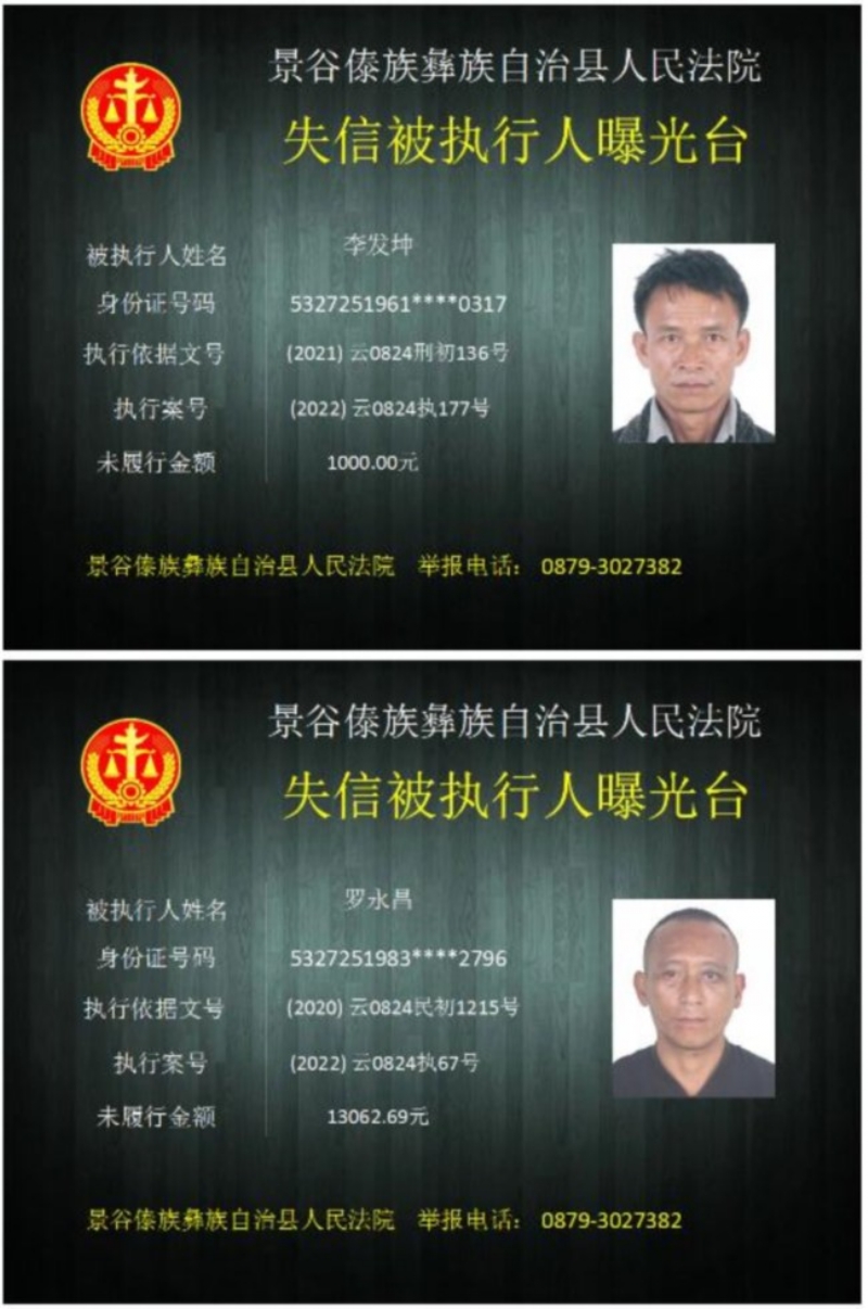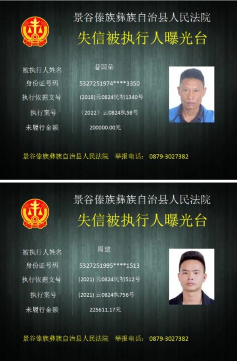 【法院公告】云南省普洱市景谷傣族彝族自治县人民法院 执行公告(2022)第01号