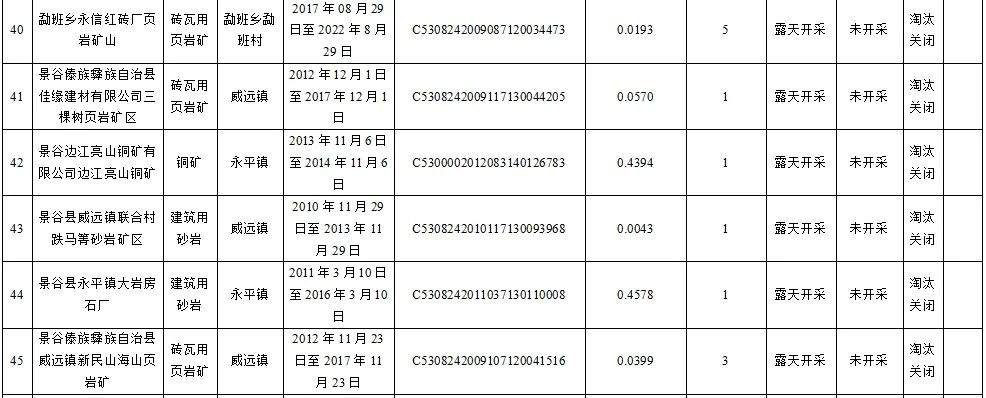 景谷傣族彝族自治县非煤矿山转型升级“四个一批”名单公示