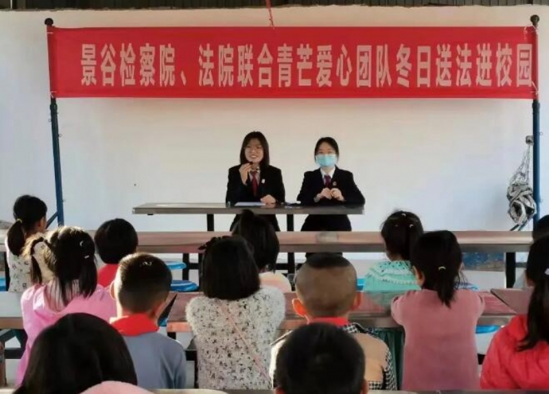 11月9日,景谷法院、检察院联合青芒爱心团队,背着满满的法治行囊,到威远镇课里小学开展以“做个知法懂法的好孩子”为主题的送法进校园活动。