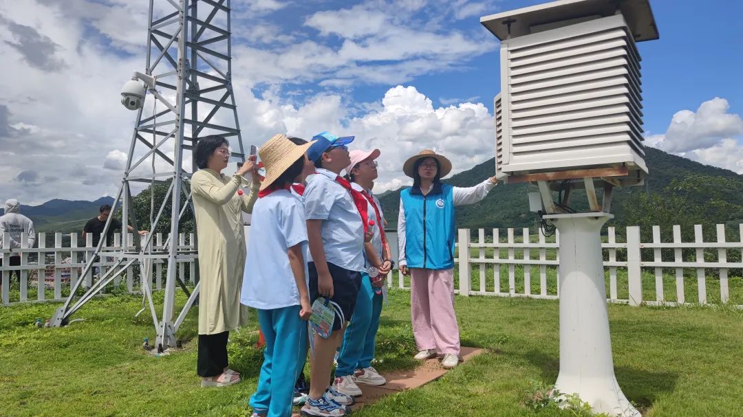 在讲解员的引领下,学生们参观了观测场、气象台以及人工影响天气指挥平台。观测场内,工作人员详细讲解了温度、湿度、风向风速、日照、能见度、降水等各项气象要素的测量原理,气象局内弥漫着浓厚的学习气氛和孩子们的欢声笑语。在气象台,讲解员为孩子们介绍了气象监测情况、卫星云图、多普勒天气雷达等知识,极大地激发了学生们的兴趣。随后,学生们走进人工影响天气指挥平台,观看了一系列气象科普小实验、微课堂及自然灾害全民防灾动画视频。