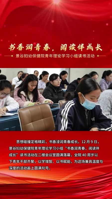 近日,景谷妇幼保健院青年理论学习小组开展“书香润青春,阅读伴成长”读书活动,全院40周岁以下青年干部齐聚,以学增智、以书赋能。