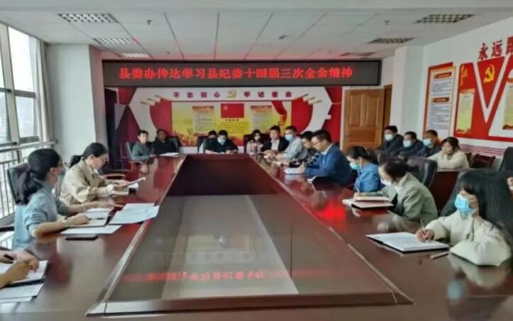 及时传达学习县纪委十四届三次全会精神。2月3日,及时召开干部职工会议传达学习县纪委十四届三次全会精神,让干部职工清醒认识当前我县全面从严治党、党风廉政建设和反腐败斗争面临的复杂形势,坚定政治方向,保持政治定力,勇于自我革命,不断提升廉洁自律意识,时刻警钟长鸣,牢记党的宗旨,以更加扎实的工作作风推进各项工作有序开展。