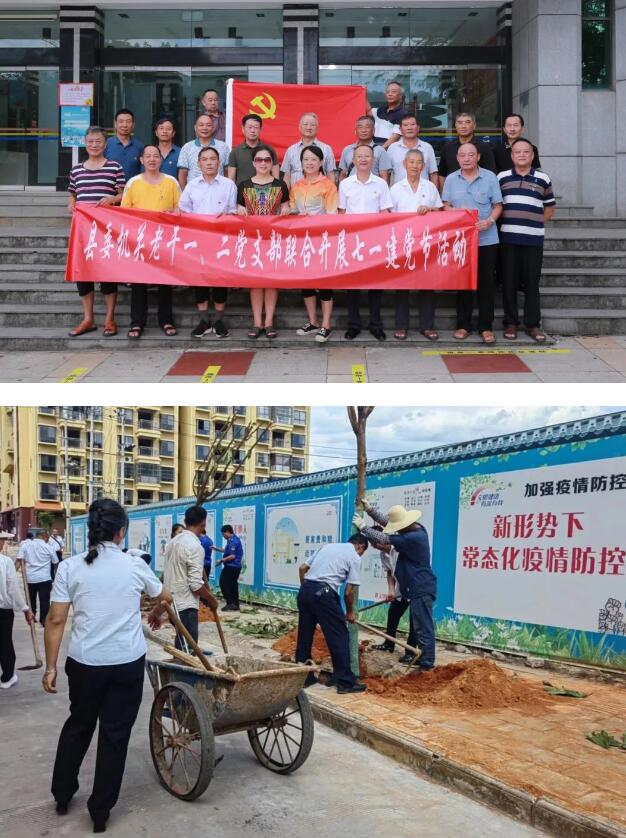 志愿服务,银心辉映党旗红 “七一”前夕的孔雀广场,“最美颂歌献给党”主题晚会如火如荼开展,威远镇各老干党支部积极组织老党员参与文艺展演志愿服务活动,为全县广大群众带来视听盛宴,激发广大群众爱国爱党热情;清扫枯枝树叶、为绿化苗木松土……景谷住建局老干党支部党员积极主动参与到绿美城市建设中,争当绿美先锋;全县各乡镇老干党支部组织党员积极参与到绿化美化、环境卫生整治中,以志愿服务庆祝“七一”。