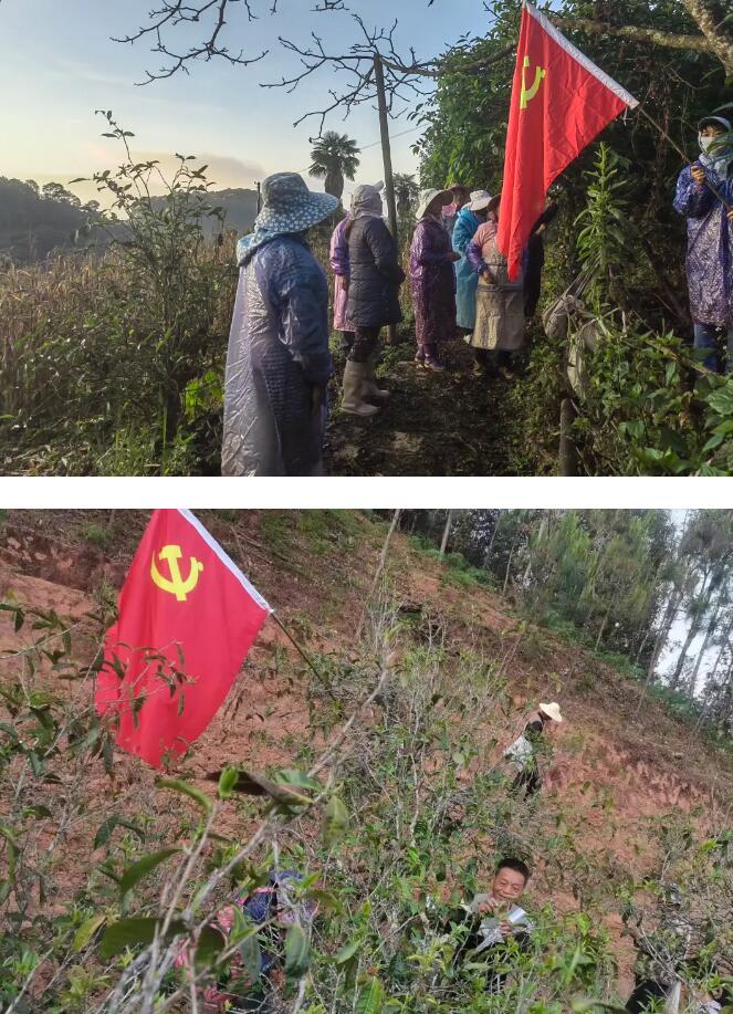 “红色”先锋引领强堡垒 充分发挥党支部战斗堡垒作用和党员先锋模范作用,引导党员在基层工作中“亮身份、树形象、比成绩、争先进”,以实际行动增强党组织凝聚力和战斗,推动基层党建与产业发展“同频共振”。四月是春茶上市的旺季,为帮助劳动力困难家庭解决茶叶采摘难题,景谷镇文东村龚家村、大柏树联合党支部发动20多名党员到低保户付某家茶地开展助农采茶促增收活动,把主题党日现场“搬”进茶园山间,帮助茶农抢采春茶110公斤,保障收益3300元左右。